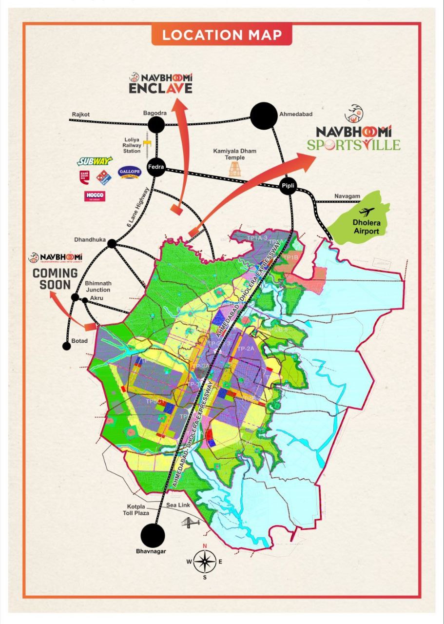 Dholera SIR, The world's biggest Special Investment Region and a part of the DMIC. The First planned SMART CITY with a total area of 920 sq.kms. and Development Area 567 sq.kms. Dholera SIR advocates its supremacy in terms of investment opportunity and development prospective. With kind of infrastructure, connectivity and growth plan Navbhoomi Sportsville will come up to as an ideal place to dwell as well as invest.